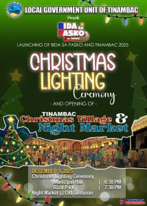All these exciting activities are proudly presented by the Local Government Unit of Tinambac, under the dedicated leadership of Mayor Edward Albert โ€œBobitโ€ P. Prades, who wholeheartedly wishes to bring a joyful, and meaningful celebration of Christmas to every Tinambaqueรฑo.