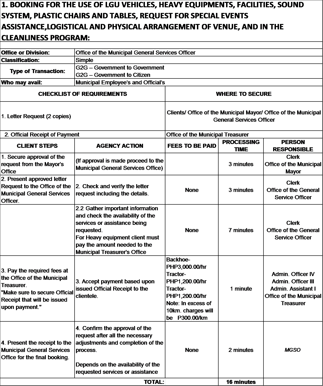 To ensure the delivery of general services and provision of adequate facilities and procurement needs of LGU offices and constituents (barangay, municipalities, NGOs, and others). Take custody and be accountable for all properties owned by the Local Government Unit of Tinambac. To ensure cleanliness-related activities, such as possible or imminent destruction or damage to records, supplies, properties, and structures, and the sanitary clean up of waste materials or debris, particularly during natural disasters and calamities.