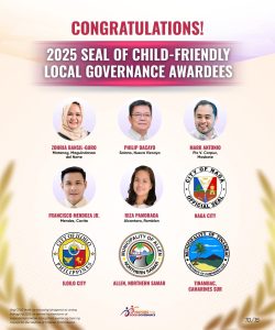 Congratulations, Municipality of Tinambac for being recognized by the Department of the Interior and Local Government (DILG) and the Council for the Welfare of Children as one of the 2025 Seal of Child-Friendly Local Governance (SCFLG) Awardees!