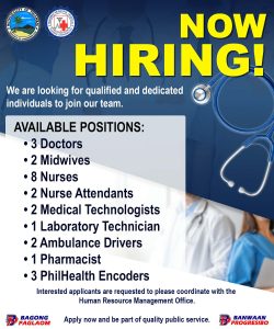โ€‹The Local Government Unit of Tinambac is looking for qualified and dedicated healthcare professionals to join our medical team! Be part of our commitment to providing quality public health services to our community.
